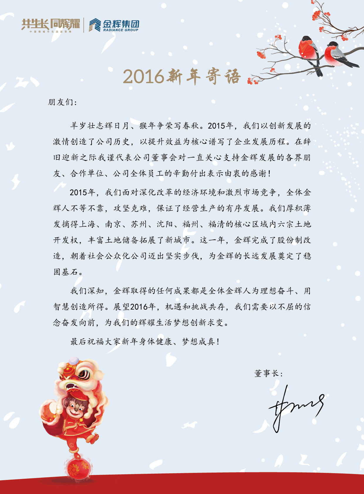2016年金輝集團(tuán)董事長新年寄語