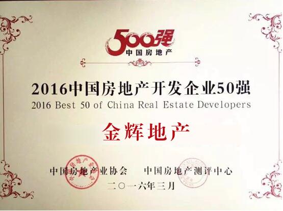 3月22日,在中國房地產(chǎn)業(yè)協(xié)會和中國房地產(chǎn)測評中心聯(lián)合舉辦的“2016中國房地產(chǎn)500強(qiáng)測評成果發(fā)布會暨500強(qiáng)峰會”上,金輝憑借優(yōu)異的銷售去化能力和良好的綜合實(shí)力,正式躍升中國房地產(chǎn)42強(qiáng)!