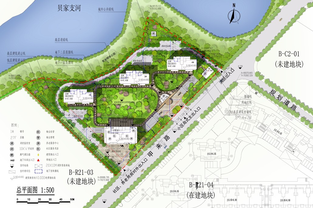 整個項目占地1.13萬方,總建面積約4.99萬方,地上約3.38萬方,地下約1.51萬方。由4幢27層高層圍合而成,其實1號樓是自持,2、3、4號樓采用一字排開的布局,使得公園的景觀資源能滲透進項目內,最大化利用了公園的景觀資源,從來名貴,必居于湖畔。并且,古人云,臨湖而居,盡得財氣。